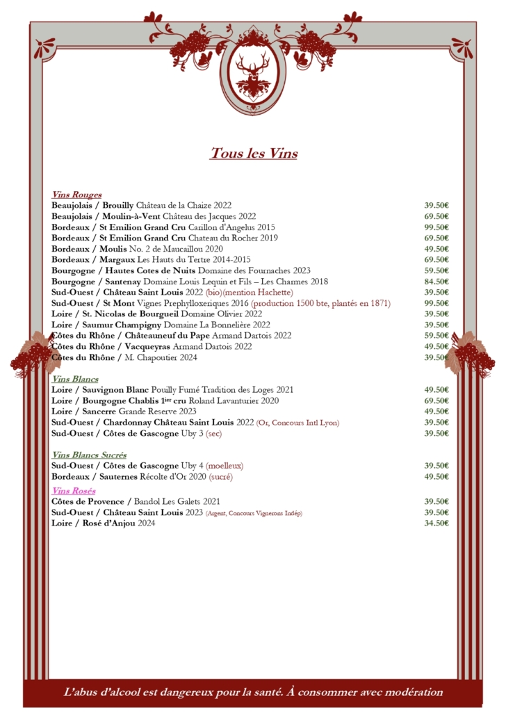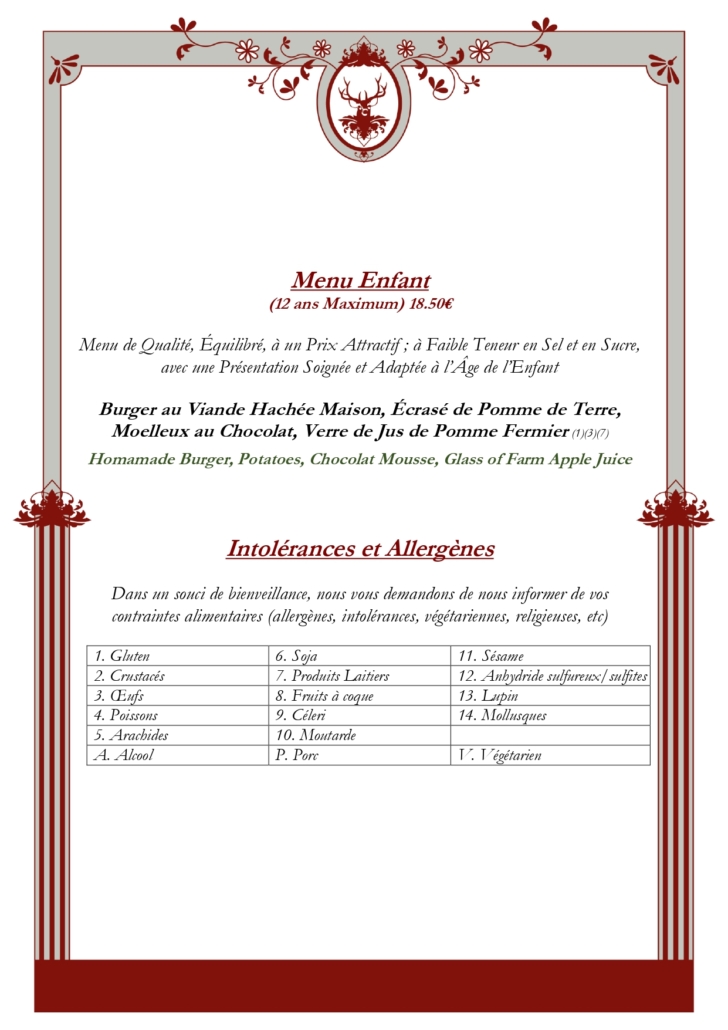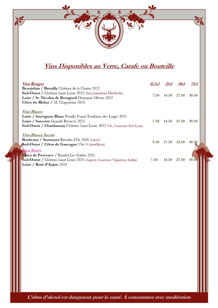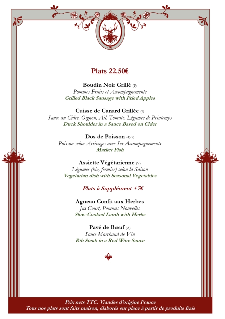 Cliquez sur les images pour découvrir notre menu. Click on the images to page through our menus.